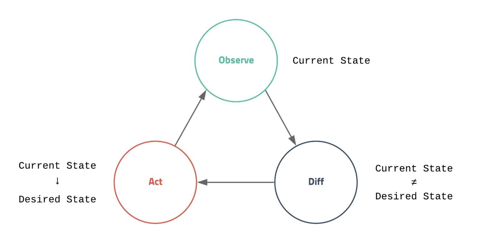 - 위의 그림처럼 확인된 내용과 현재 상태가 다를 경우 위에서 설명한 Desired State를 유지하기 위한 조치를 취하게 됩니다.